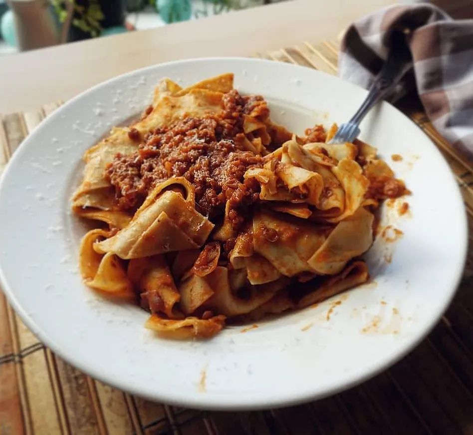 We simply substitute the meat for lentils, keeping the same slow cooking and secret ingredients. Surprisingly similar to the traditional Ragù and just as delicious.